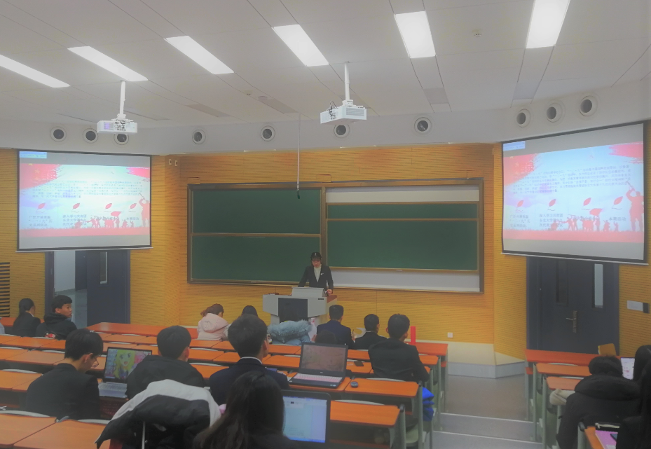 活动开始,各班团支书通过抽签方式决定答辩发言顺序。之后,团支书有三分钟的时间上台发言,通过演讲和PPT放映的方式分享各自的工作经验和班级特色的团日主题学习方式。各位答辩人员通过精美的PPT对本班团日活动开展情况进行了全方位的汇报展示,展现出各团支部团结向上与积极热情的风采。在每位团支书进行发言答辩结束后,评委从团日活动内容、活动理念等方面对答辩过程进行打分与点评。本次活动在同学们热情的掌声中圆满结束。