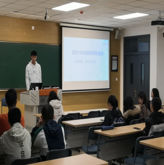 班导师见面会分别由“班导师介绍”、“专业指导”、“学习经验分享”、“问答环节”四个方面进行。首先我们以热烈的掌声欢迎班导师上台发言。李伟伟老师做了简短的自我介绍和经济类专业方面的指导,也跟我们分享了学习和考研方面的经验,还教会我们放平心态和学会包容。老师的讲解让我们对专业和就业,还有考研准备工作有了进一步的了解。燃起大家的学习斗志,在新的学期里全身心的投入到大二学习生活,遇见更好的自己。