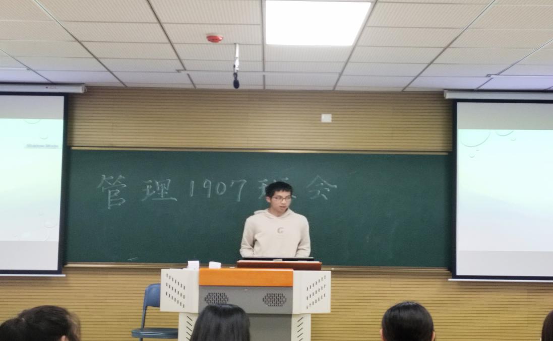 10月2416点,管理1907班全体成员在一号楼B303成功举行了本学期的第一次班会。管理1907班全体学生参加本次活动,班导师卢震出席会议。