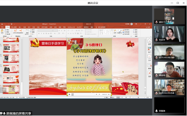 为传承不朽雷锋精神,走近北京冬奥,感受冰雪魅力,3月19日,经济2002团支部于线上开展了以“奥运精神催奋进·学习雷锋启新程”为主题的团日活动,本支部全体成员参与本次活动,班导师李亚宁、辅导员王守智应邀出席。