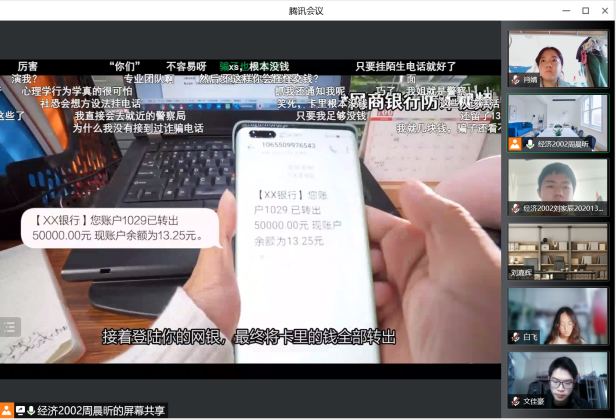 在防诈骗部分,通过对典型受骗案例及电信诈骗现场视频的分析,同学们了解了电信诈骗的常用伎俩。相关案例起到了良好的警示作用,增强了支部成员的防诈骗意识,达到了防范教育的目的,让反诈防诈的警钟在心中长鸣。