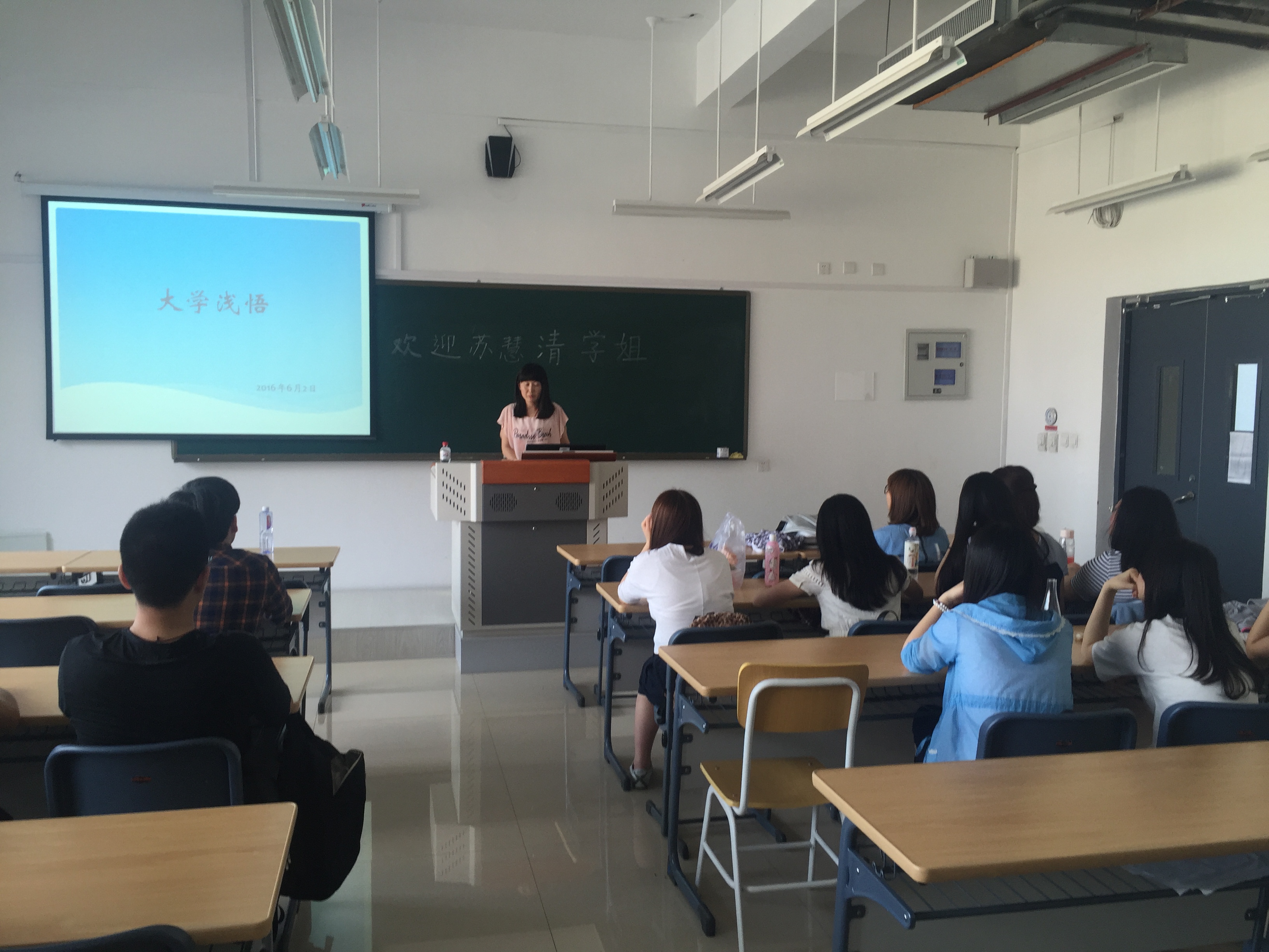 2016年6月2日,郑云虹老师在文管B22组织国贸1501班学生成功举办学业规划交流会,并邀请国贸专业博士生苏慧清同学做经验分享。