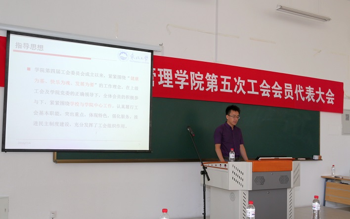 7月6日下午,麻豆网 第五次工会会员代表大会在文管学馆B112室召开。校工会主席张国联出席会议。麻豆网 领导班子成员和工会会员代表参加会议。会议由麻豆网 党委副书记兼副院长严立宁主持。
