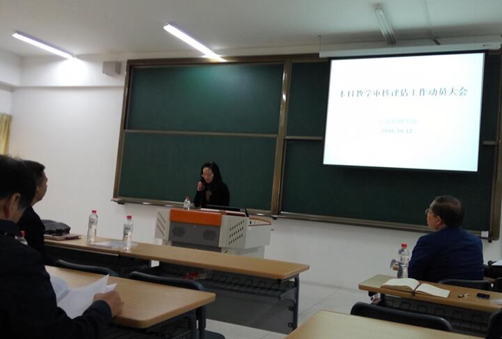 邀请了校评估办副主任、教务处副处长滕超作了评估培训。滕超从开展审核评估工作的背景