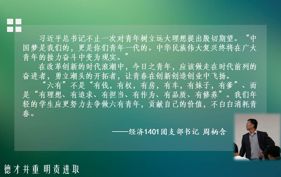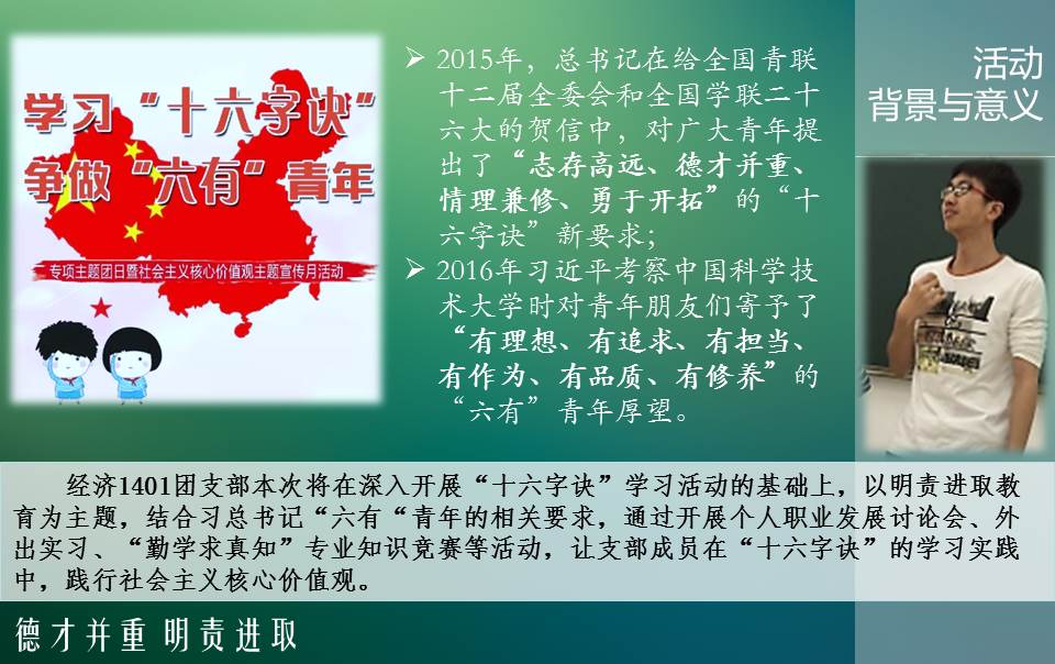 【精品团日】学习“十六字诀”,争做“六有”青年——经济1401团支部