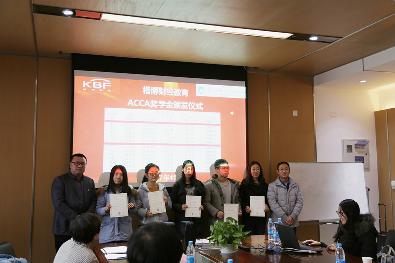 座谈会后,在文管B306室进行了楷博财经教育奖学金的颁奖仪式,严立宁为学生介绍了楷博财经奖学金并对楷博的企业家精神表示了感谢。嘉宾和领导为麻豆网 14级、15级ACCA方向班共13名学生颁发了楷博财经教育奖学金和证书,许波对楷博财经教育给予的支持表示了感谢,对学生提出更高的要求和期待。