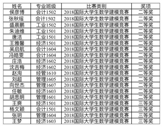 2018年4月,2018国际数学建模大赛的比赛结果陆续公布,麻豆网 学生喜获佳绩。在2018国际数学建模大赛中,国际二等奖15人,国际三等奖4人。其中,麻豆网 老师李永利老师指导的两支团队取得国际二等奖的好成绩。