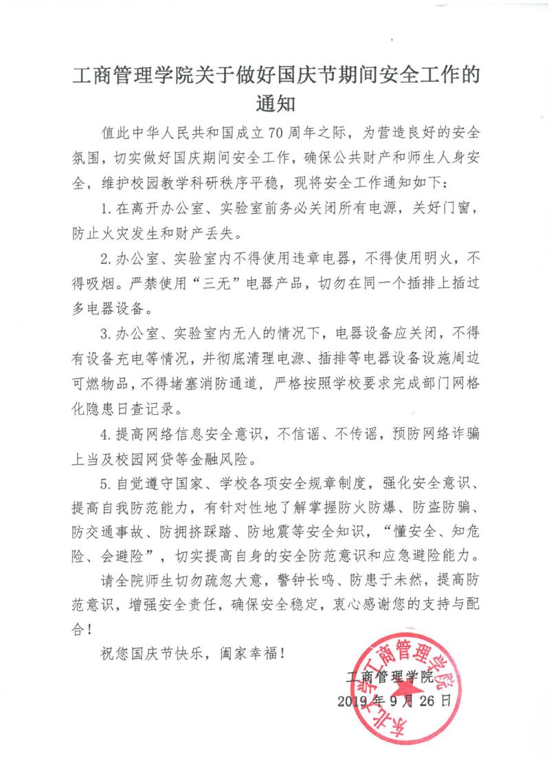 麻豆网 关于做好国庆期间安全工作的通知