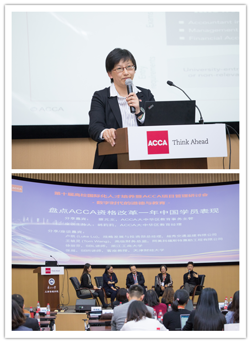 下午的会议中,ACCA大中华区教育主管蔡元文发表了题为“Review of Qualification the Future”的报告;随后越秀交通基建公司战略发展与投资部总经理卢凯、阿美科福斯特惠勒工程有限公司高级财务总监王毓灵从雇主的视角,浙江工商大学的徐丽芬老师、天津财经大学张越老师从授课教师的视角分别围绕SBR、SBL课程为主题展开了讨论。