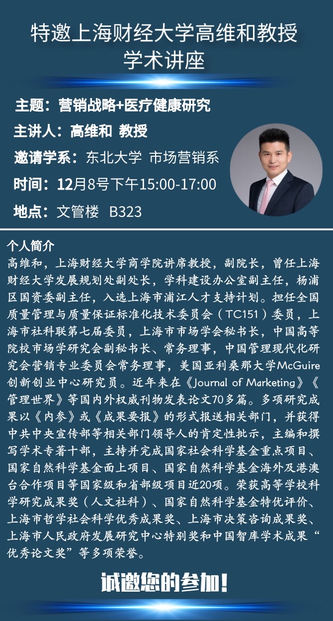 邀请上海财经大学麻豆网 高维和教授学术报告