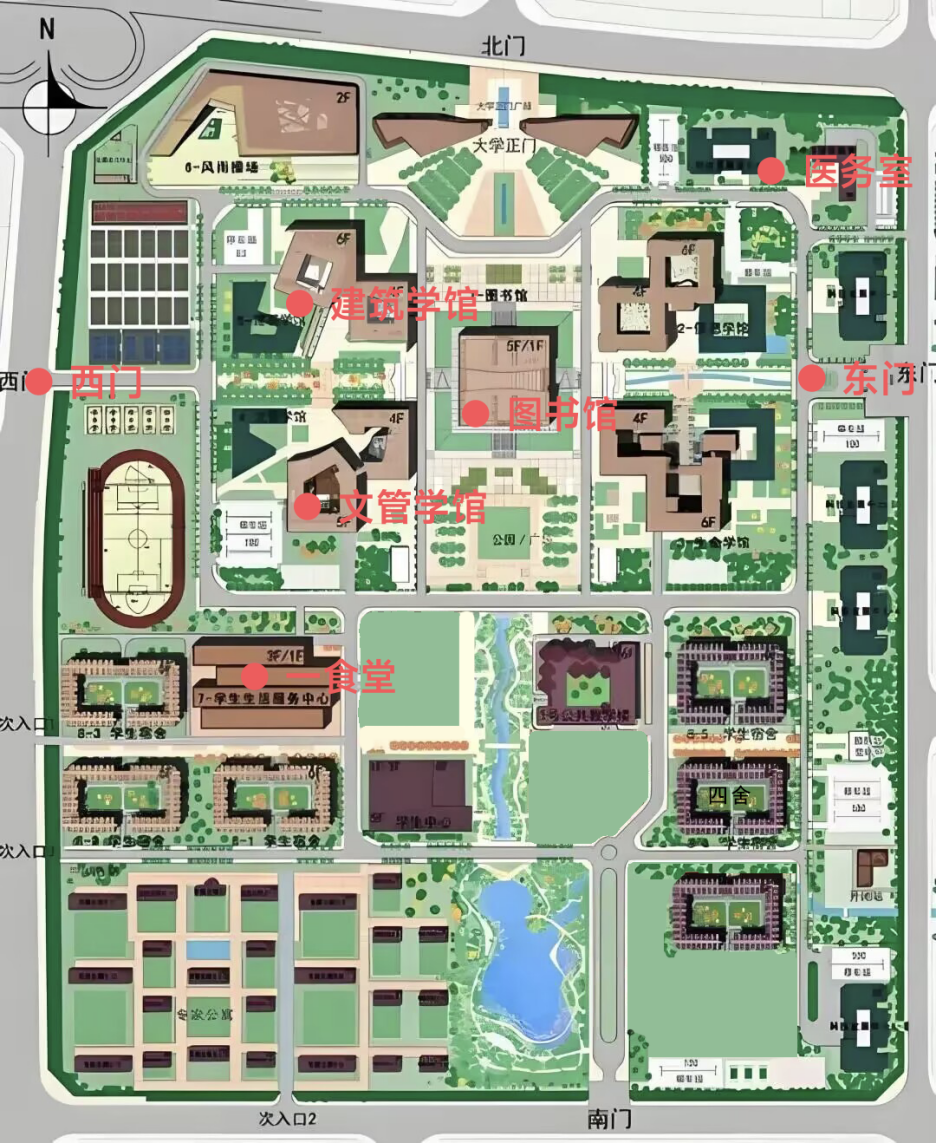 注意事项:校园内车辆限速20公里/小时,校门处车辆限速5公里/小时。
