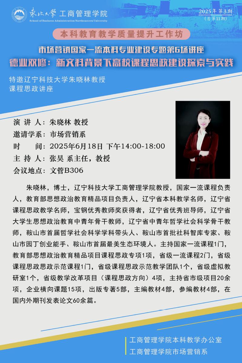 本科教育教学质量提升工作坊第11期——特邀辽宁科技大学朱晓林教授课程思政讲座